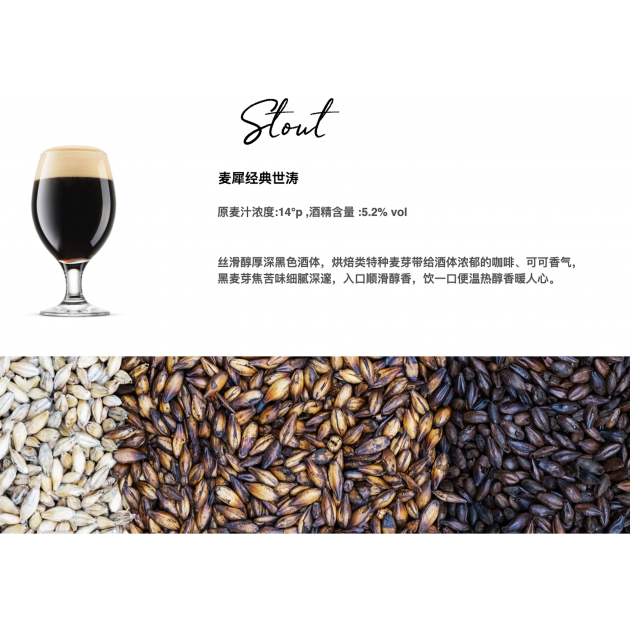 这款世涛啤酒融入了回可的热情 、 榛果的香醇及咖啡的馥郁,十二种不后焙制程度的麦芽层层递进,交织出复采而迷人的焦香风味,让人身临一场丝滑的泡沫巧克力之旅。